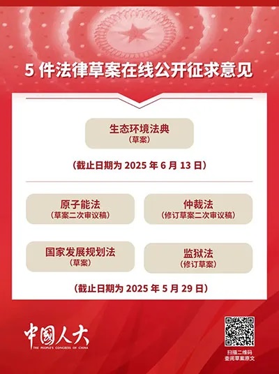 即日起,生態(tài)環(huán)境法典草案等5件法律草案公開(kāi)征求意見(jiàn)。如有意見(jiàn)建議可以登錄中國(guó)人大網(wǎng)(www.npc.gov.cn)、國(guó)家法律法規(guī)數(shù)據(jù)庫(kù)(flk.npc.gov.cn)提出,也可以將意見(jiàn)寄送全國(guó)人大常委會(huì)法制工作委員會(huì)(北京市西城區(qū)前門(mén)西大街1號(hào),郵編:100805。信封上請(qǐng)注明××法律草案征求意見(jiàn))。